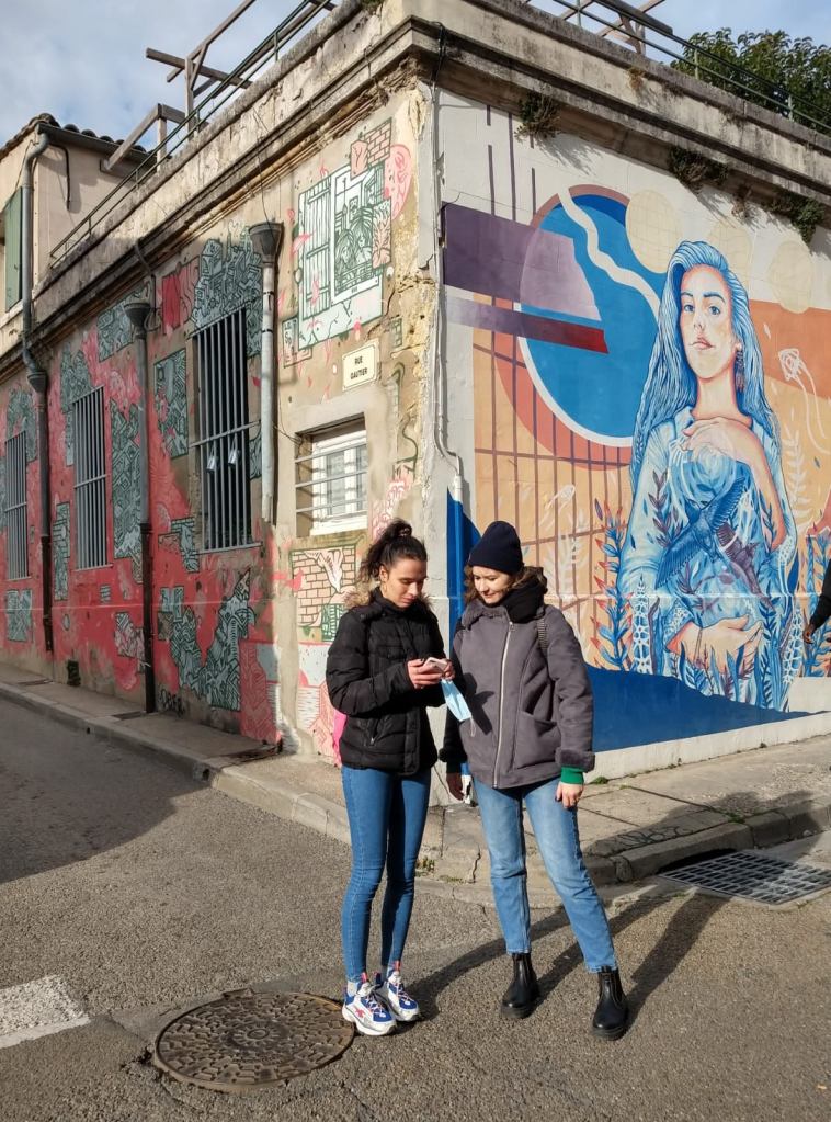 The illustration training started off with a photography workshop while discovering the beautiful city of #Nîmes! This was not a regular visit of the city as we visited Nîmes’ youth favourite locations. With the pictures taken, we used them as tracing guide so they can be added to our map!